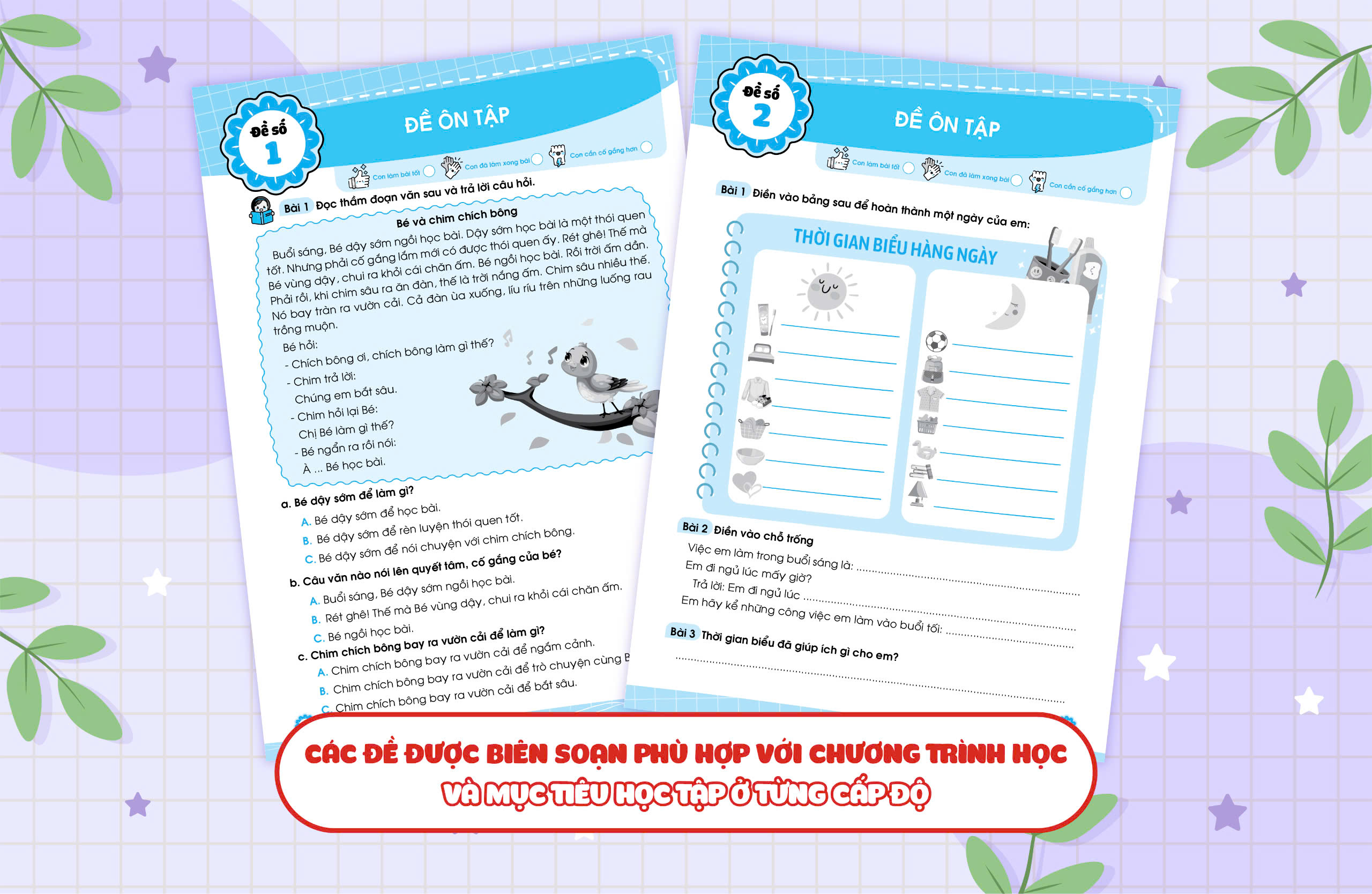 Bộ sách Đề ôn luyện và tự kiểm tra Toán và Tiếng việt là một "trợ thủ" đắc lực giúp các em học sinh có thể tự ôn luyện sau mỗi giai đoạn học tập: ôn tập ngắn sau 2-3 tuần học, ôn tập giữa học kỳ và ôn tập cuối học kỳ - cuối năm học.